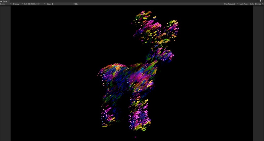 Model particle aggregation effect created using Unity VFX Graph and produced through SDF